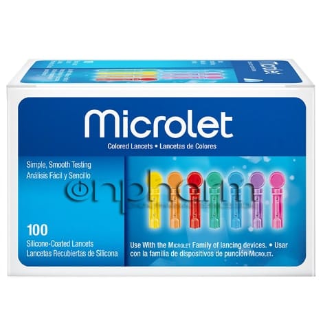 Microlet® Σκαρφιστήρες έγχρωμοι. Χρωματιστές βελόνες, καλυμμένες με σιλικόνη. Για χρήση με όλες τις συσκεύες τρυπήματος Microlet® της Bayer. Τρόπος Χρήσης: 1. Τοποθετείστε τη βελόνα, απομακρύνετε το προστατευτικό καπάκι. Μετά τη χρήση, τοποθετείστε το προστατευτικό καπάκι σε επίπεδη επιφάνεια. Σπρώξτε τη βελόνα με ασφάλεια πάνω στο καπάκι. 3. Ενώ πιέζετε το μπλε πλήκτρο απελευθέρωσης ₍a₎, τραβήξτε το μπλε άκρο επαναρρύθμισης ₍b₎ και η βελόνα θα πέσει. Για περισσότερες πληροφορίες: Επίσημο Website Εταιρίας: http://www.bayer.gr