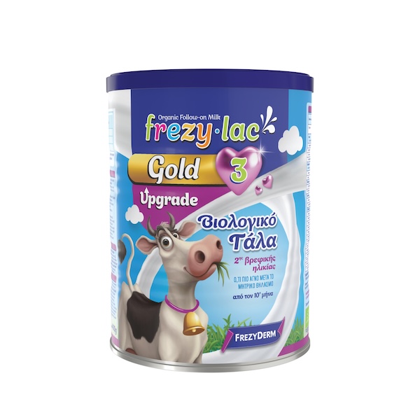 Το FREZYLAC GOLD UPGRADE 3 είναι βιολογικό αγελαδινό γάλα σε σκόνη, κατάλληλο για βρέφη από τον 10ο μήνα στο πλαίσιο μιας μεικτής διατροφής.