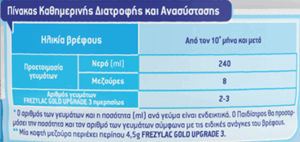 **σε σχέση με την προηγούμενη φόρμουλα Frezylac Gold
